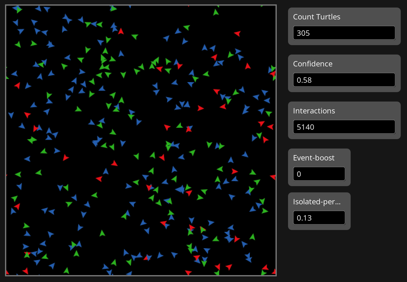 These variables change over time based on interaction outcomes. My model includes additional variables (language comfort for international students; openness for local students). I included these for structural completeness and future extensibility, but they are not activated in the current interaction rule, to keep the model easy to understand and match the experiment scope.